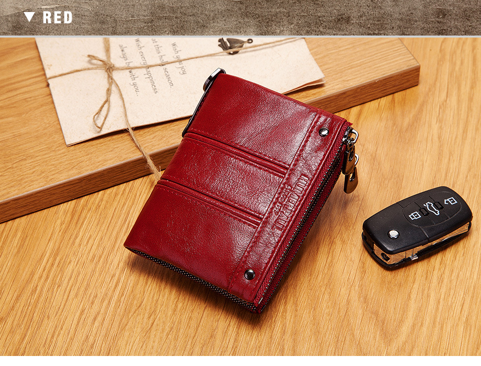 Men Wallets Genuine Leather RFID Blocking Wallet Hasp Zipper